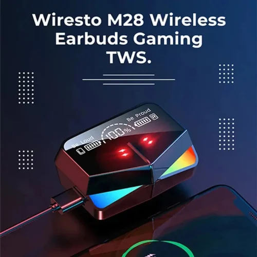 Experience next-level sound with the M28 Gaming Wireless Earbuds – designed for gamers, music lovers, and everyday users who demand style, performance, and comfort. Featuring dynamic RGB lighting and a futuristic charging case with a digital LED display, the M28 earbuds don’t just sound powerful, they look stunning too.